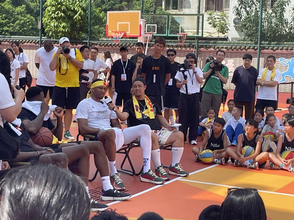 当日,“字母哥”来到位于广州荔湾的林凤娥小学,在新落成的耐克中国高中篮球联赛球场上与学生们互动。“字母哥”效力的密尔沃基雄鹿队在2022-2023赛季NBA常规赛排名第一,却意外倒在了季后赛首轮。