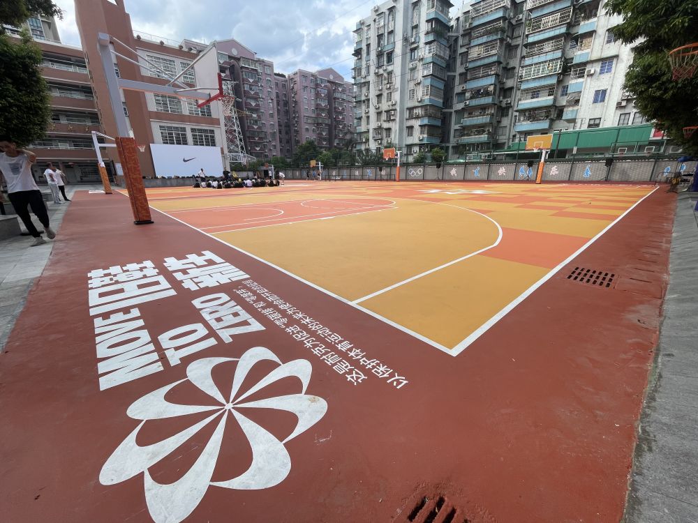 当天举办活动的球场是耐克“旧鞋新生”计划环保球场,将回收的旧鞋进行研磨、打碎、融合之后,作为球场的缓冲层。